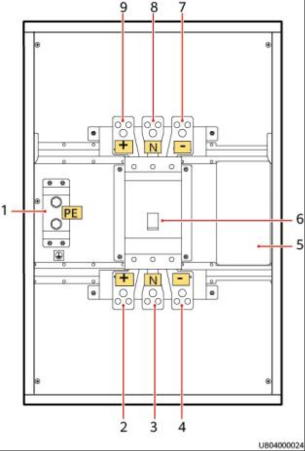 (5)BIB控制板 (6)断路器 ( 7 )UPS侧负极 (8)UPS侧N极