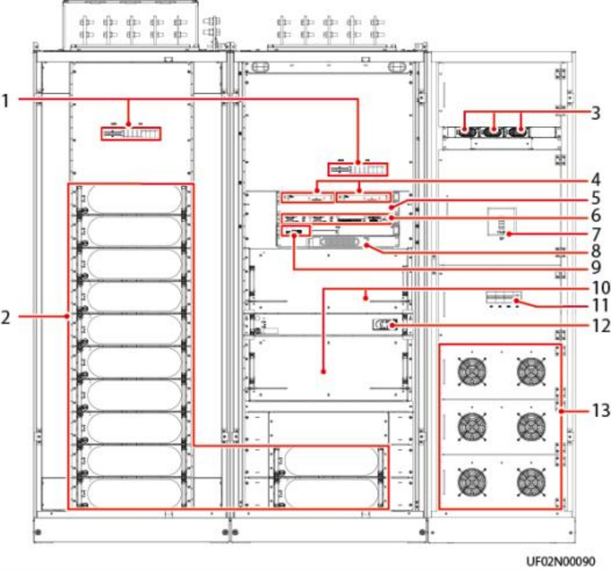 ( 10)旁路模块 ( 11 )电感柜风扇电源开关QS1 ( 12)旁路控制模块 ~ 4