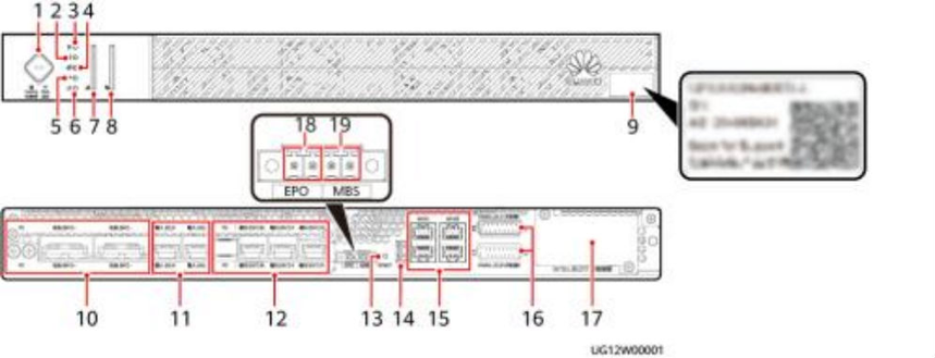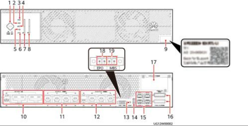 ( 17 )选配卡插槽 ( 18)EPO接口 ( 19)维修旁路模式接